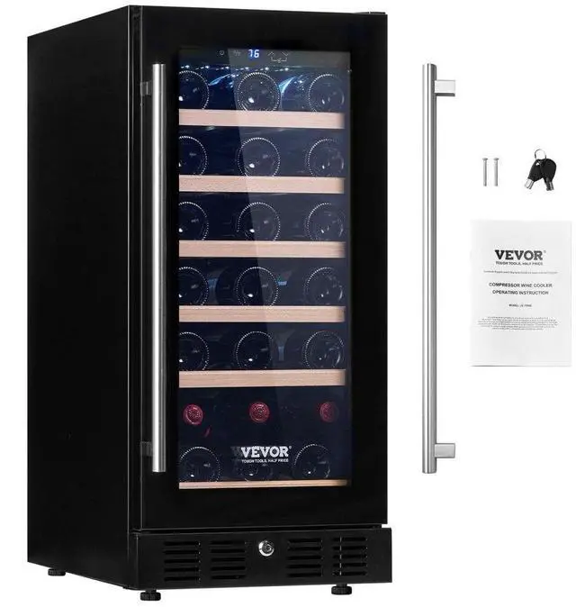 VEVOR Wine Cooler, 30 Bottles Capacity Under Counter Built-in or Freestanding Wine Refrigerator, Beverage Cooler with Blue LED Light, Single Door, Child Lock for Drink Beer Soda Wine Water, ETL Listed