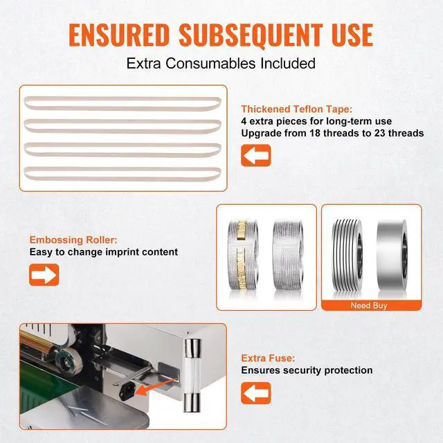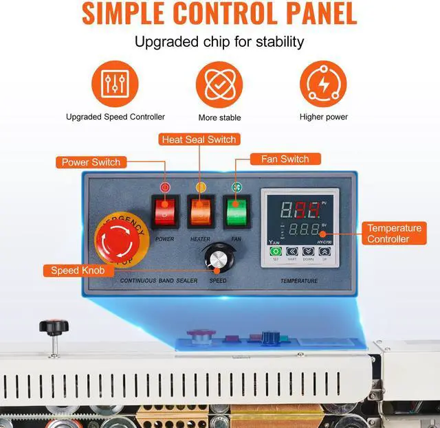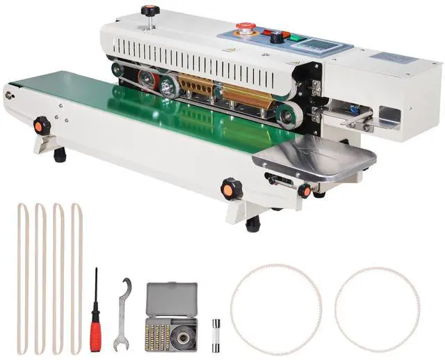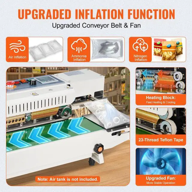 VEVOR Continuous Bag Band Sealing Machine, 0.24-0.47 in/6-12 mm Seal Width, Horizontal Band Sealer Machine with Digital Temperature Control, Bag Sealer for 0.02-0.8 mm Plastic Bags, Inflation Function