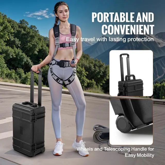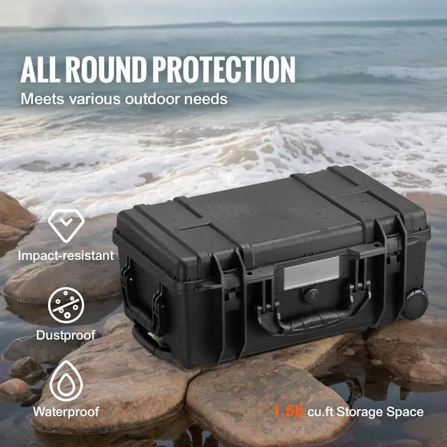 VEVOR 1.58 Cu.ft Weatherproof Hard Case with Retractable Pull Handles & Wheels