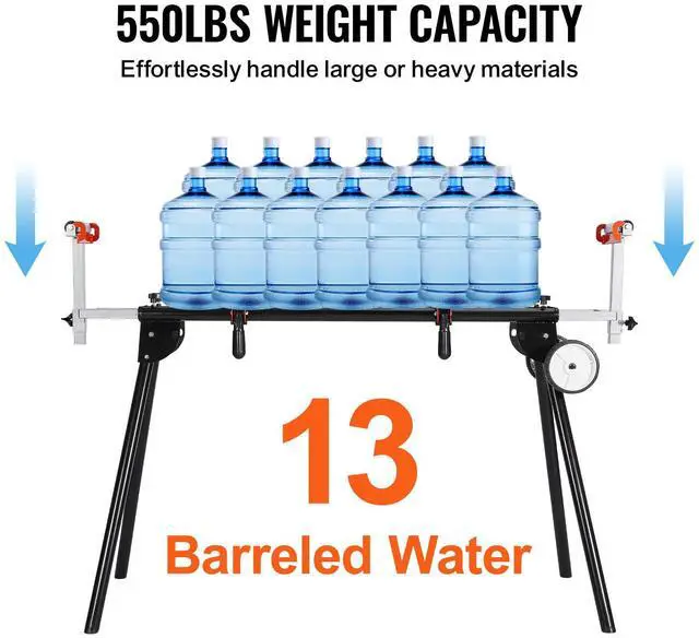 Adjustable Design: The portable miter saw stand's length and height can be easily adjusted, securely holding large materials. You can customize the height for a comfortable working position, reducing fatigue. With adjustable support bars on both sides, it's ideal for angled cuts as well.