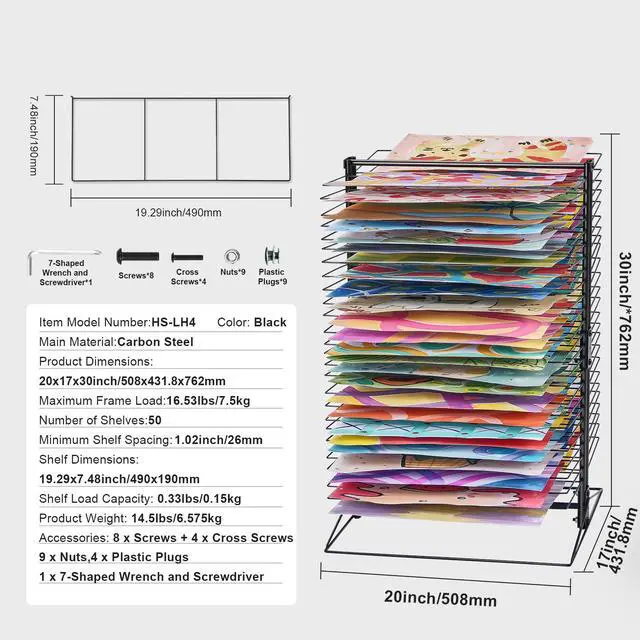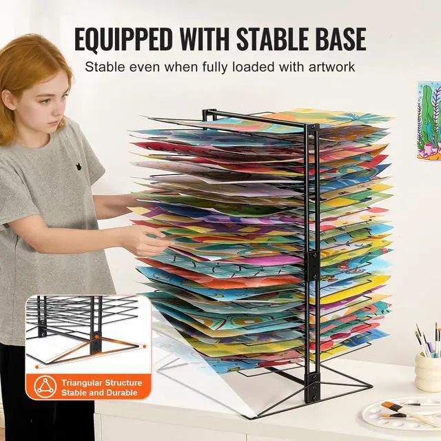 • VEVOR Art Drying Rack, 50 Removable Shelves 20 x 17 x 30 inch Paint Drying Rack with Stable Base, Carbon Steel Metal Painting Drying Rack for Artwork in Classroom, Art Studios and Schools, Black
