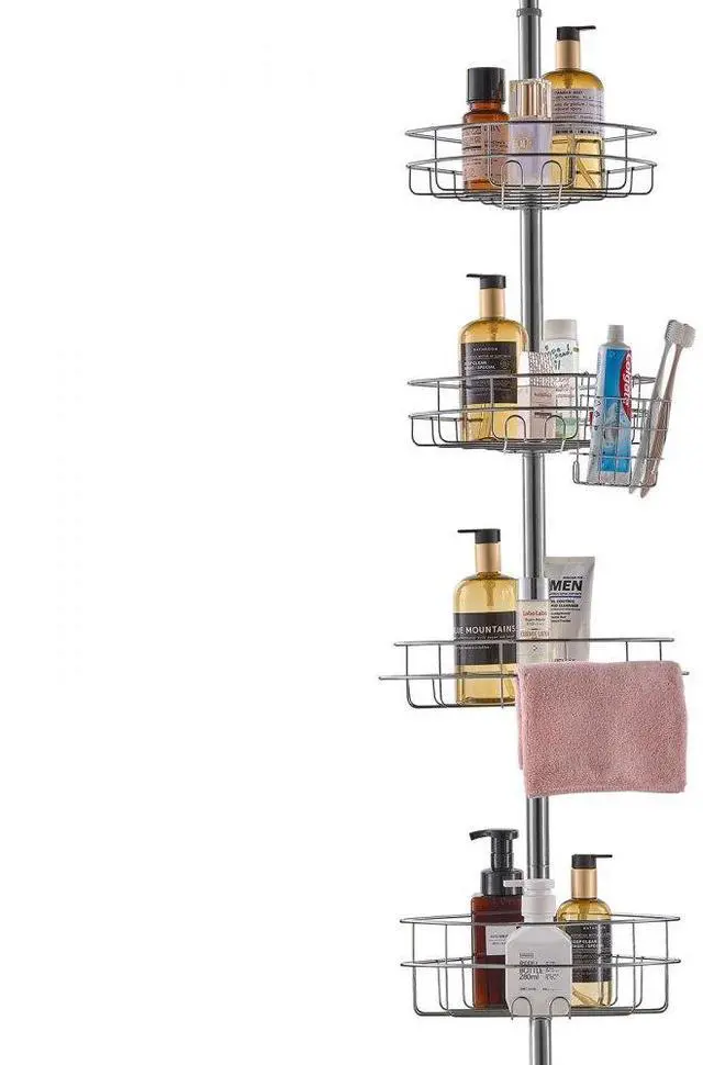 VEVOR Shower Corner Caddy Tension Pole, 56" to 114" High, Multi-Functional Shower Tension Pole with Strong Load-Bearing Tray, Rust-Proof Easy-to-Install Tension Pole, Fit for Bathroom & Washroom