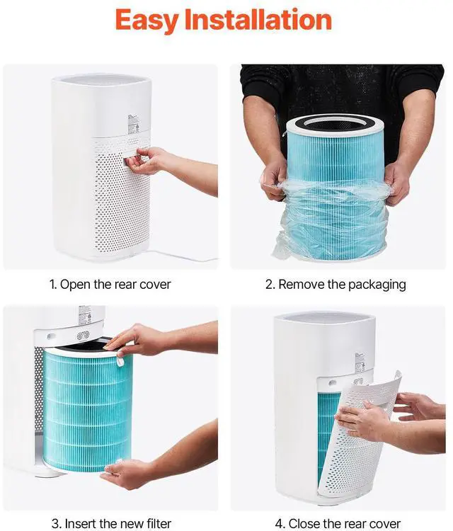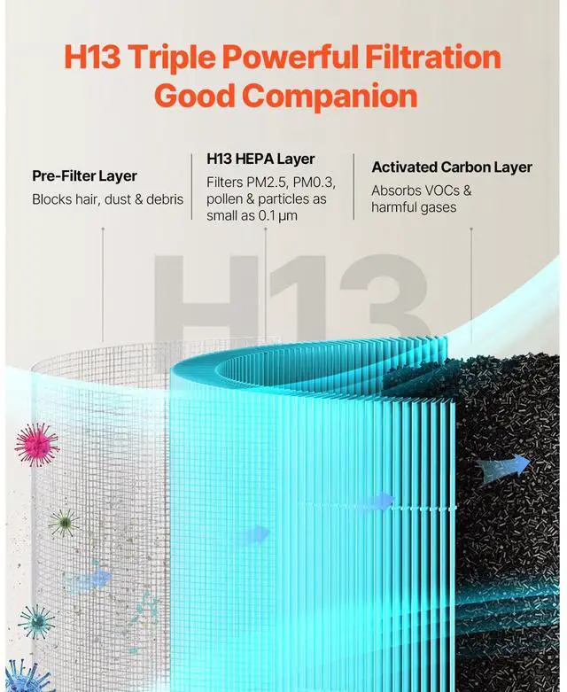 VEVOR Air Purifier Replacement Filter, H13, 3-in-1 Compact & Lightweight Replacement Filter with Sturdy PP Pre-Filter, Easy-to-Grab Purifier Filter with Activated Carbon, Fit for Cylindrical Purifier