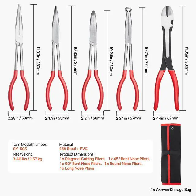 Long Nose Plier: 11.02 x 2.28 x 0.37 in / 280 x 58 x 9.5 mm