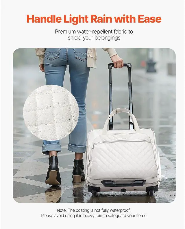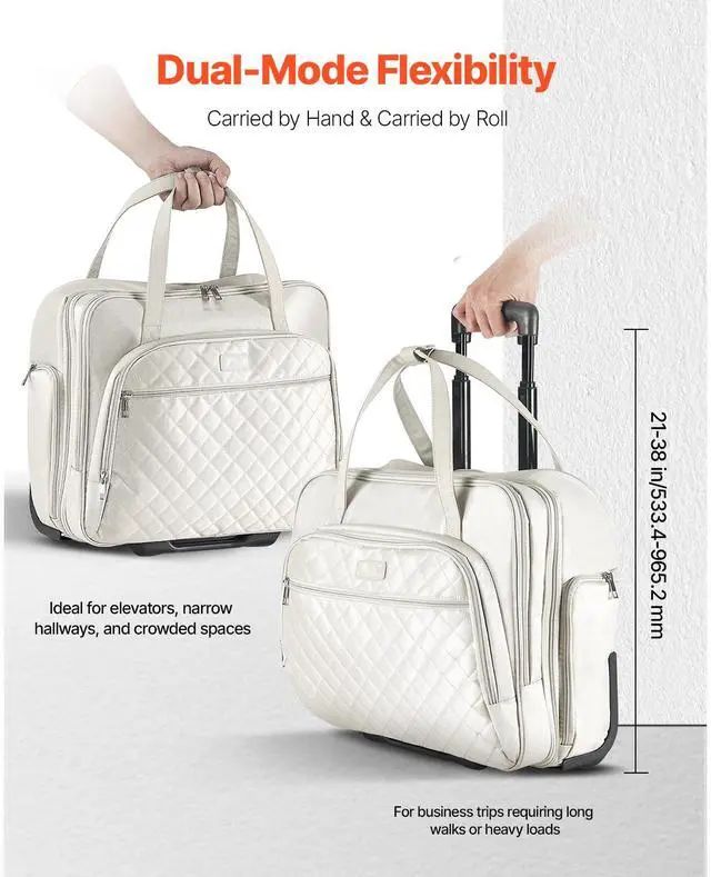 VEVOR Rolling Laptop Bag, Fits Up to 15.6 Inch Laptop, Wheeled Briefcase, Roller Computer Tote Bag with 2 Fixed Wheels & Telescoping Handle, Laptop Case for Work Travel Business Office, Women Men