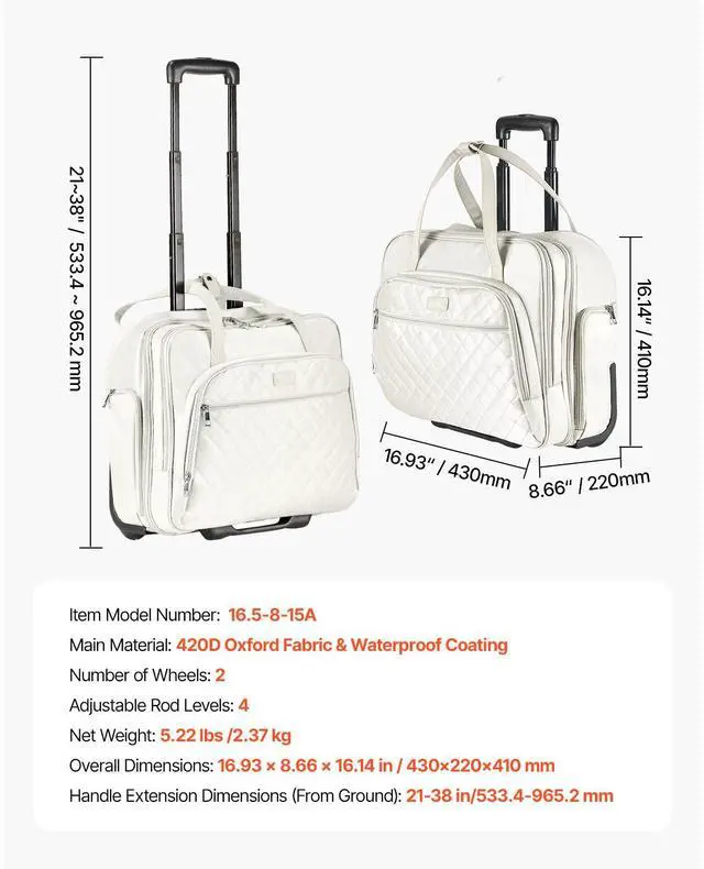 Item Model Number: 16.5-8-15A,Number of Wheels: 2,Main Material: 420D Oxford Fabric & Waterproof Coating,Adjustable Rod Levels: 4