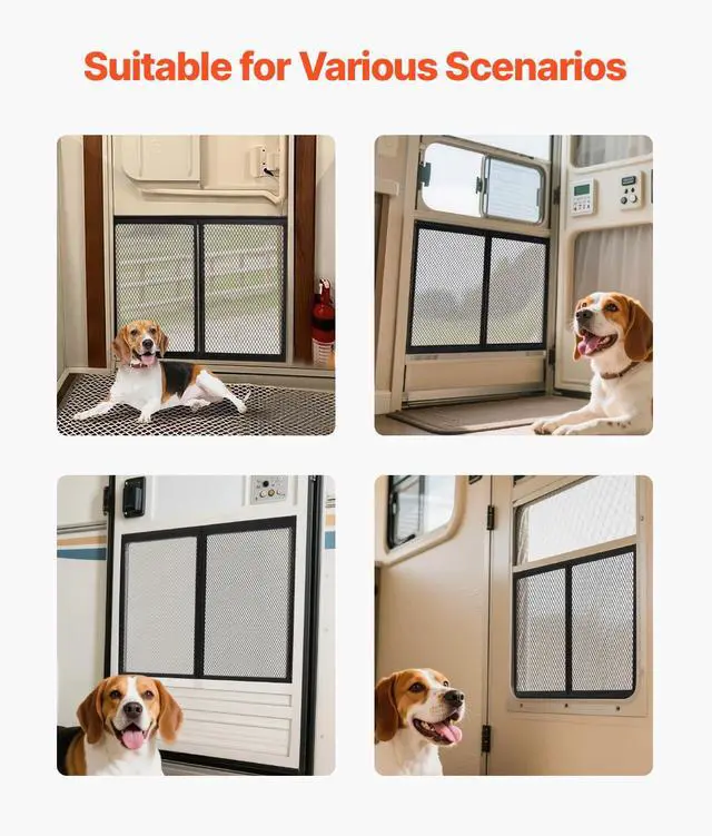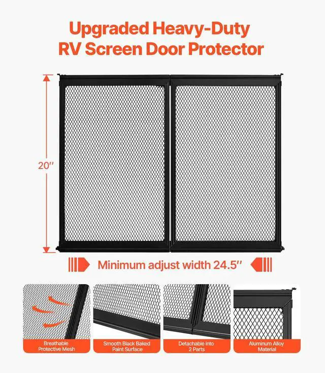VEVOR RV Screen Door Protector, 24.5 x 20 inch Door Grille, Easy to Install and Disassemble, Reinforced Breathable Protective Mesh, Aluminum Alloy Camper RV Entry Protector for Pet Protection, Black