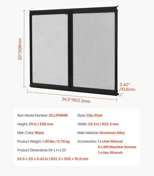 Main Color: Black,Product Dimensions (W x H x D): 24.5 x 20 x 0.42 in / 622.3 x 508 x 10.6 mm,Item Model Number: SZJJPMMB,Product Weight: 1.54 lbs / 0.7 kg,Style: Clip-Style,Height: 20 in / 508 mm,Width: 24.5 in / 622.3 mm,Main Material: Aluminum Alloy