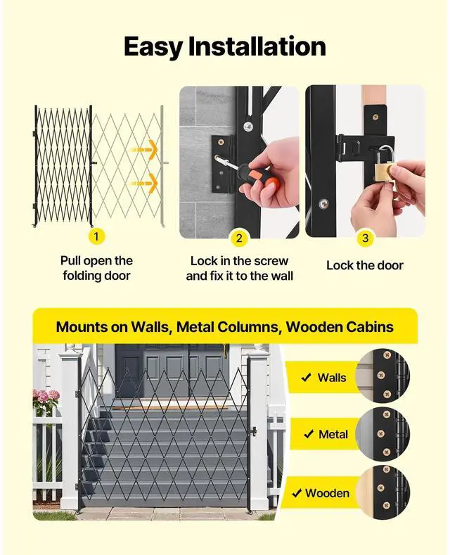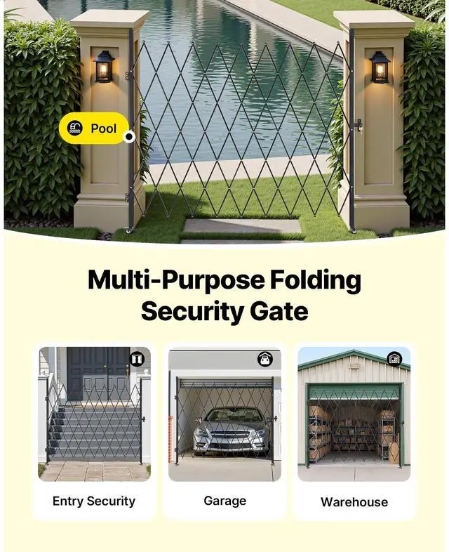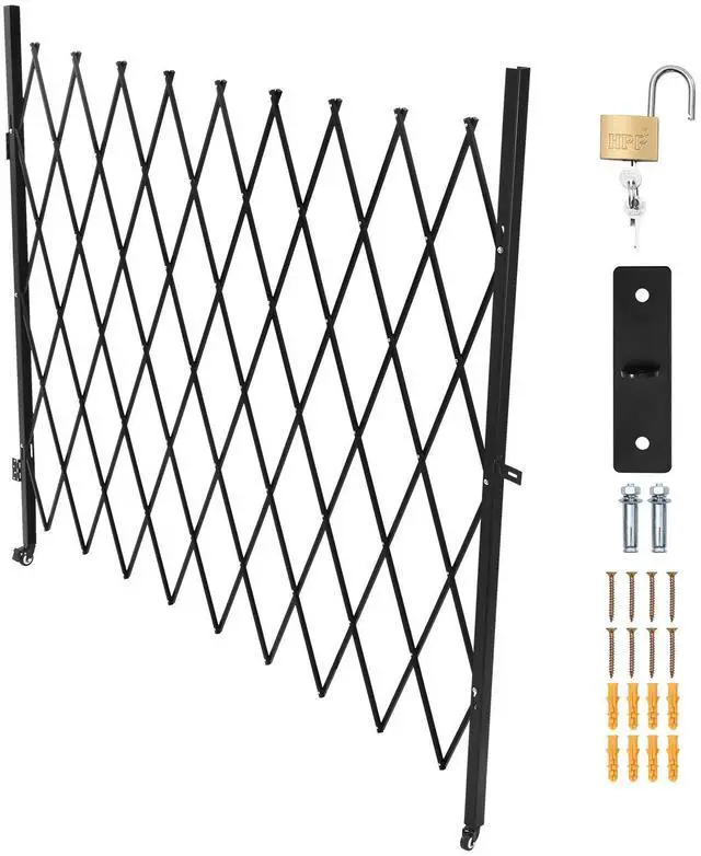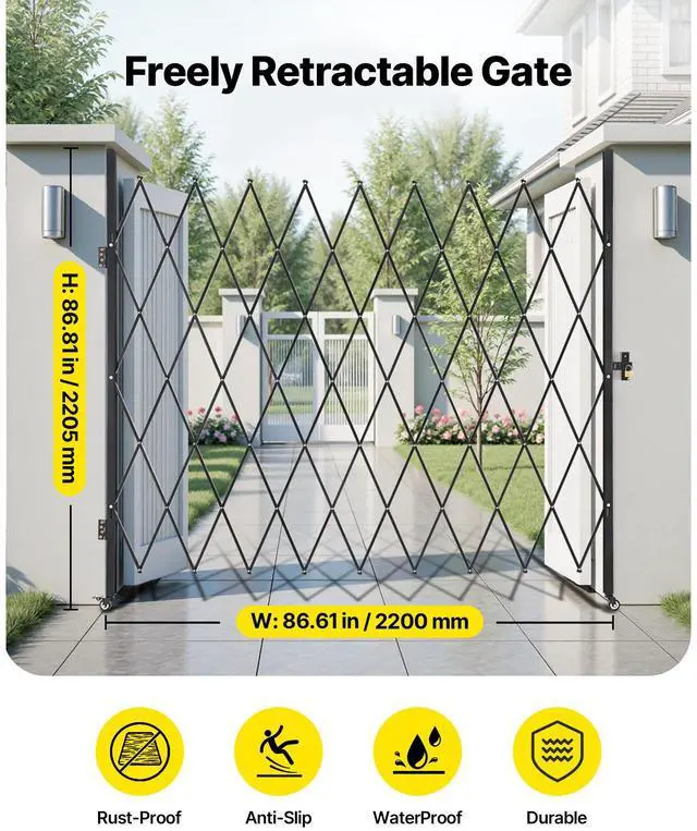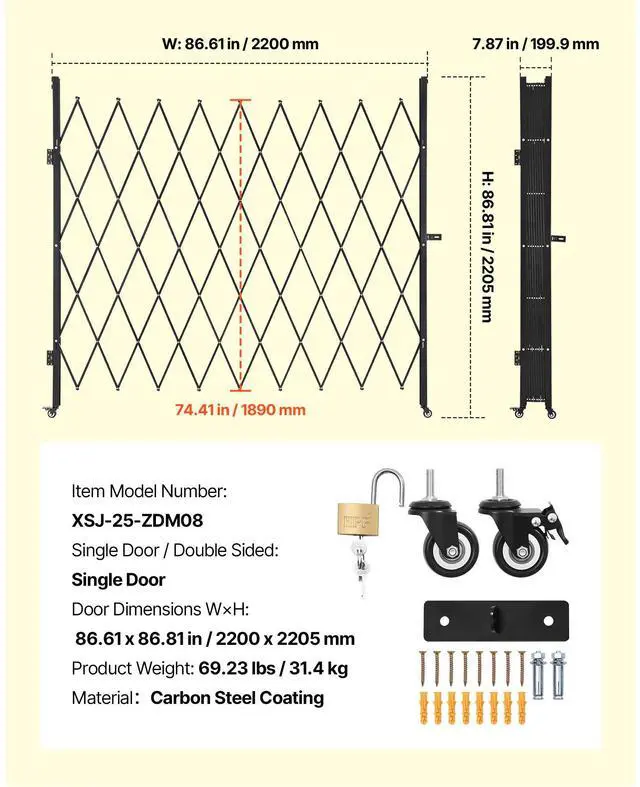 VEVOR Single Folding Security Gate, Lockable Scissor Gate with 360° Swivel Casters, Outdoor Barricade Steel Retractable Gates, for Entry Security, Garage, Warehouse & Pool, 86.61 x 86.81 in (W x H)