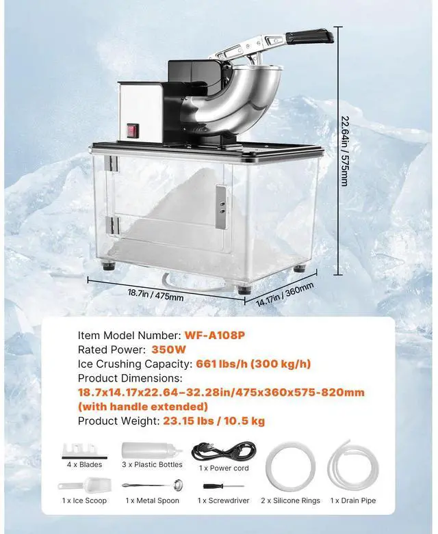 Ice Crushing Capacity: 661 lbs/h (300 kg/h)