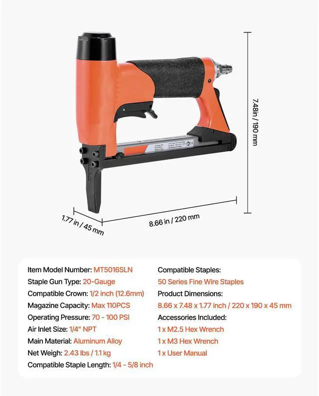 Compatible Staple Length: 1/4 - 5/8 inch