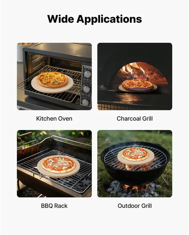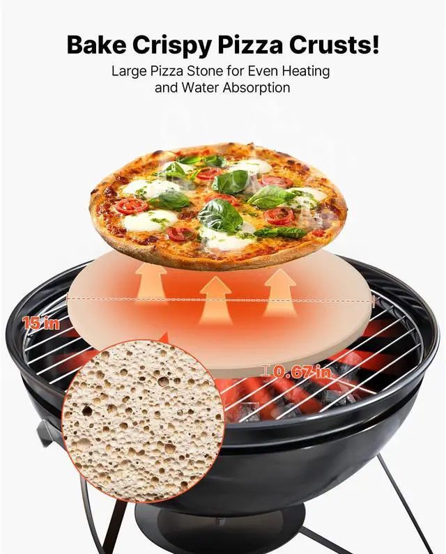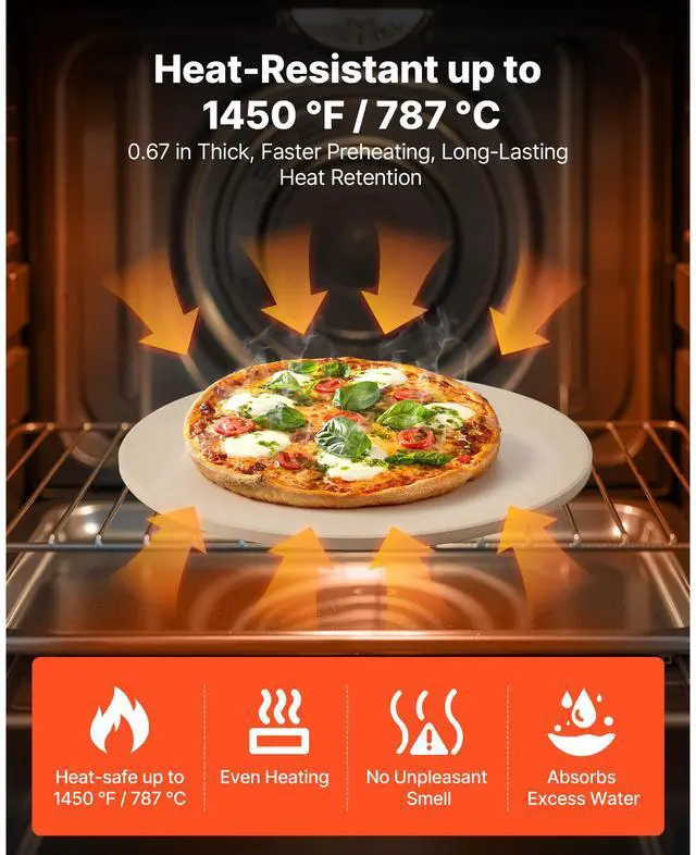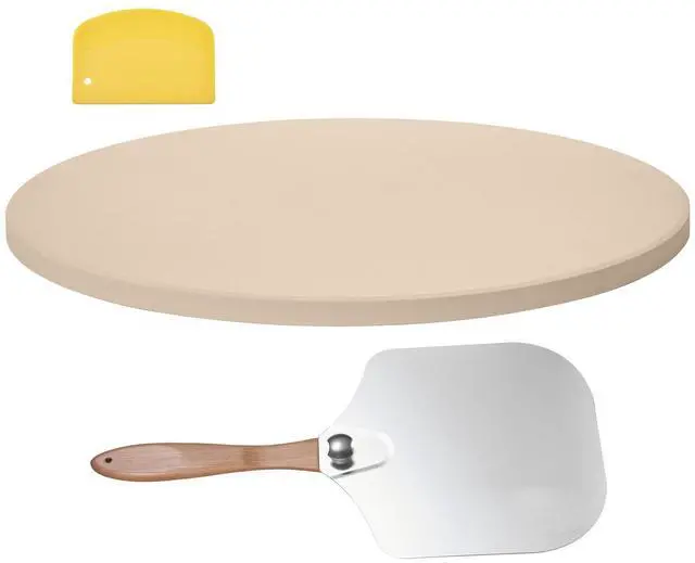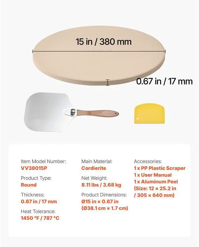 VEVOR Pizza Stone, 15 in Round Pizza Stone, 0.67 in Large Cordierite Baking-Stone with Metal Peel, Scrape, 1450 Heat-Resistant Cooking Stones, for Kitchen Oven, Baking Pizzas, BBQ Grilling