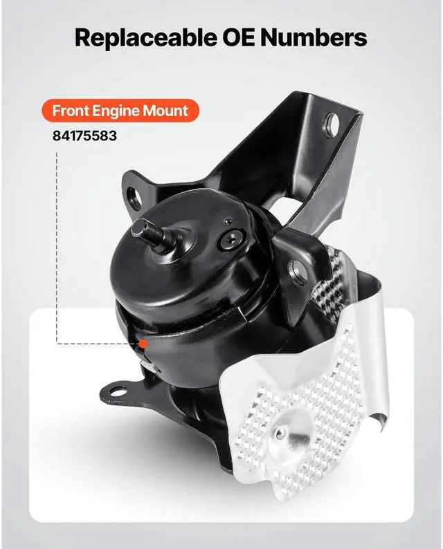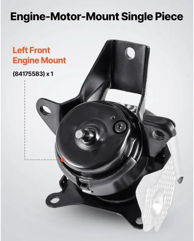 Kit Contents: Left Front Engine Mount,OE Number: 84175583,Item Model Number: S1483,Quantity: 1 PC,Compatible Vehicles: Chevrolet Silverado 1500 V8 5.3L (2014-2018),Material: Iron, Aluminum,Item Dimensions: 7.5 x 7.5 x 7.1 in / 190 x 190 x 180 mm,Net Weight: 6.4 lbs / 2.9 kg