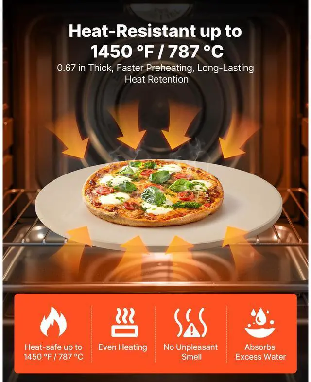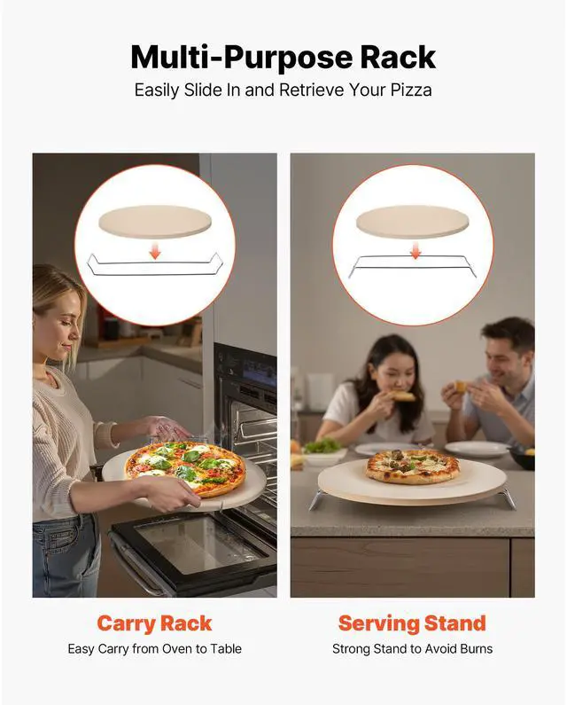 VEVOR Pizza Stone, 16 in Round Pizza Stone, 0.67" Thick Extra Large Baking-Stone with Rack Stand, 1450 Heat-Resistant Cooking Stones, for Kitchen Oven, Baking Pizzas, BBQ Grill