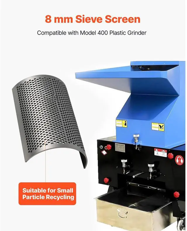 Thickness: 6 mm,Item Model Number: 400-8mm,Sieve Aperture: 8 mm,Compatible Model: 400 Plastic Grinder,Product Dimensions (L x W x H): 16.54 x 11.00 x 4.96 in/420 x 279 x 126 mm,Main Material: Steel