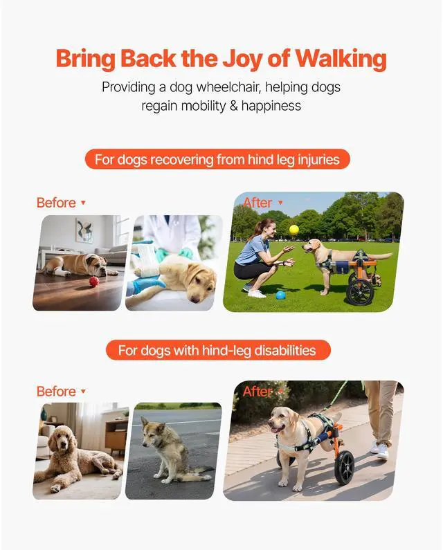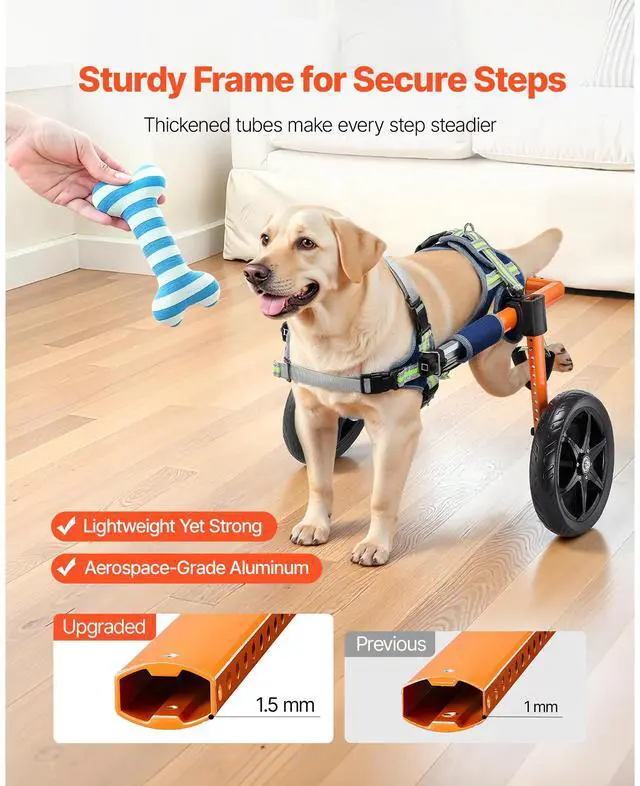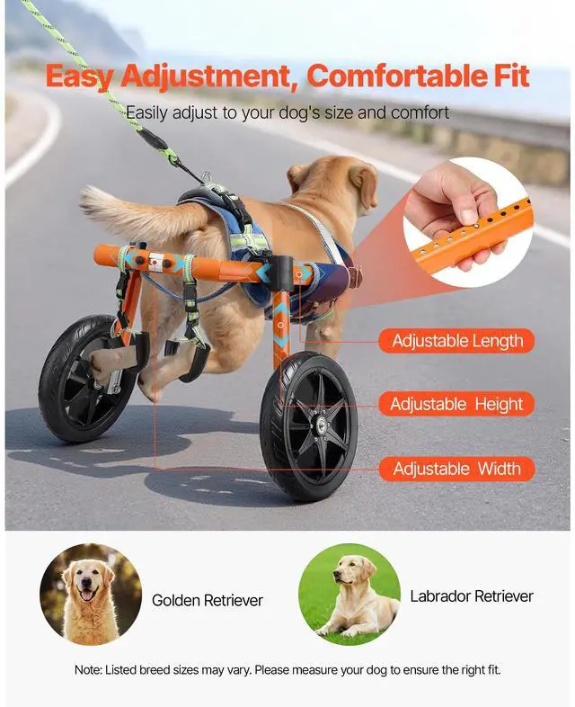 VEVOR Dog Wheelchair for Back Legs, Lightweight 2 Wheels Pet Wheelchair, Height, Width & Length Adjustable, Dog Cart with Shock-Absorbing Wheels, for Injured, Disabled Dogs 35-48 lbs, Medium