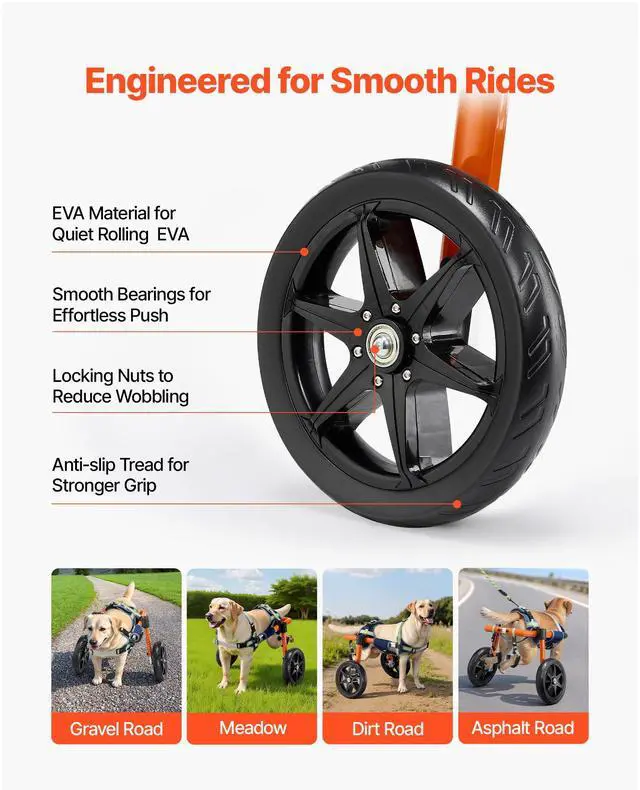 Wheel Size: 10 in (240 × 47 mm),Leash Handle Material: EVA foam,Wheel Quantity: 2,Recommended Pet Weight: 15.8821.77 kg / 3548 lbs,Wheel Material: PP + EVA,Adjustable Height: 14.7"21" (375535 mm), 12 positions,Leash Length: 2 m,Item Model Number: SS3-01,Adjustable Width: 8.7"14.1" (220360 mm), 12 positions,Leash Strap Material: Polyester,Net Weight: 2.9 kg ±3% / 6.39 lbs ±3%,Adjustable Length: 14.6"24.8" (370630 mm), 18 positions,Main Material: Aluminum Alloy,Wheel Fastening: Flanged lock nuts