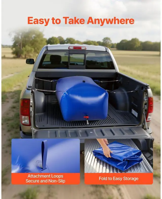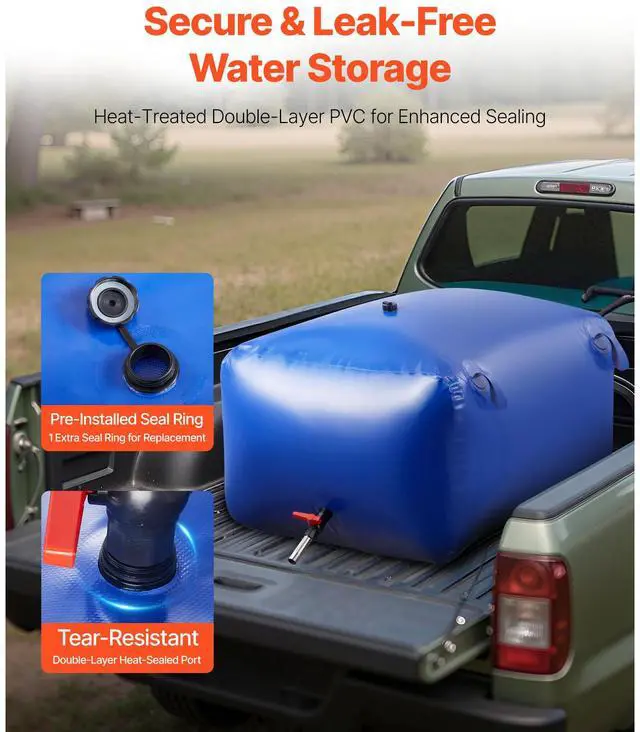 VEVOR Water Storage Bladder 105.7 Gallon Large Capacity Water Bag, Portable & Collapsible Soft Waters Container, Leakproof & Tear-Resistant PVC Emergency Waters Storage Tank for RV Truck & Outdoor Use