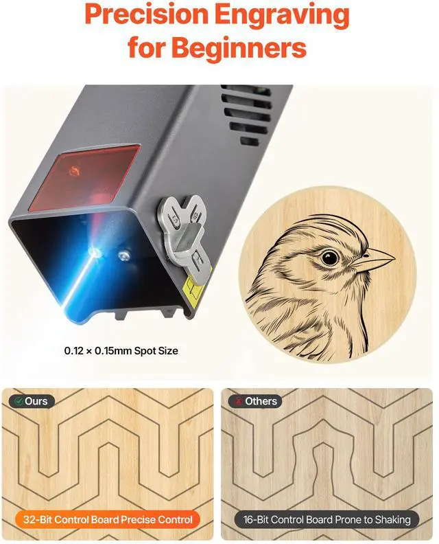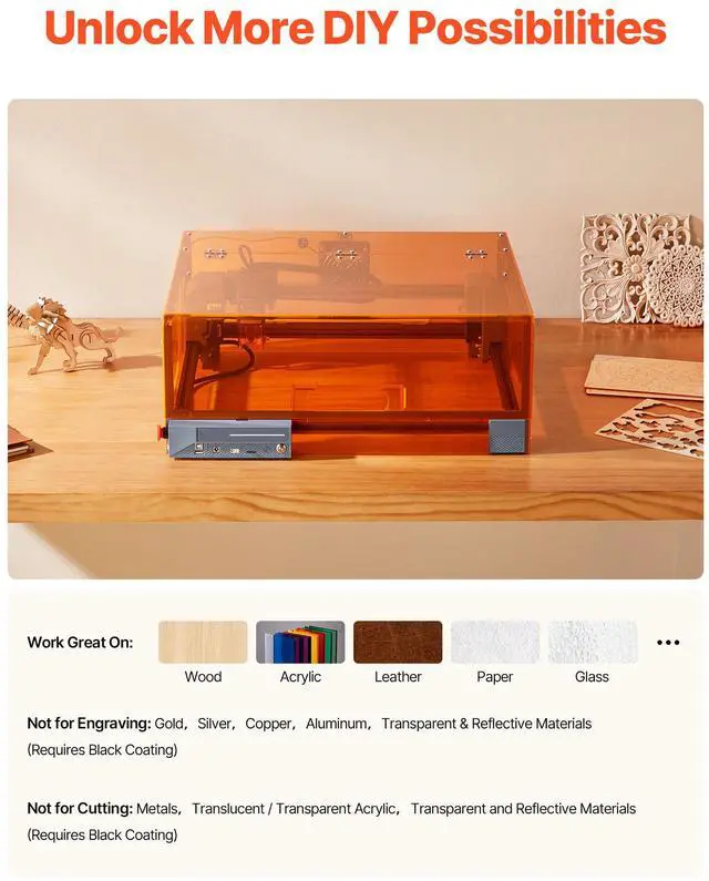 Software Compatibility: LaserGRBL (Windows), LightBurn (Mac OS/Windows, Paid License Required), CutLabX (Mac OS/Windows/APP)