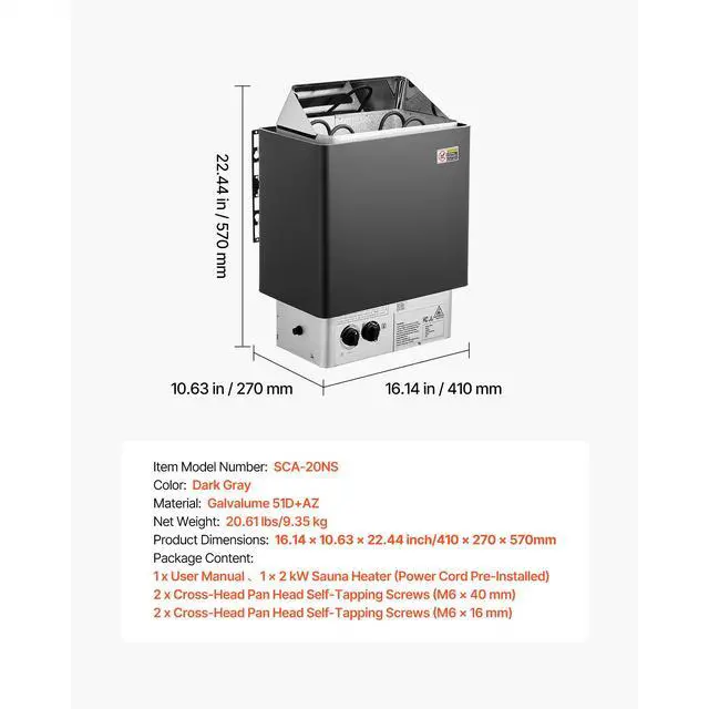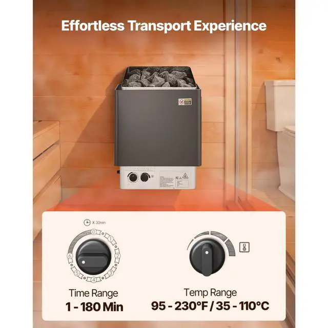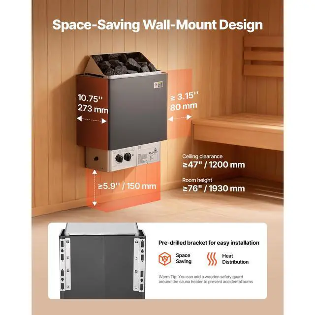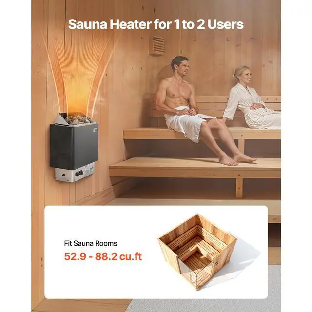 • VEVOR Sauna Heater, 2KW AC 120V Electric Sauna Stove, Dry Steam Bath Saunas Stove with Pre-Drilled Bracket, Fit 52.9 to 88.2 CU.FT Saunas Rooms, Steam Bath Stoves for Home, Commercial, Leisure Venues