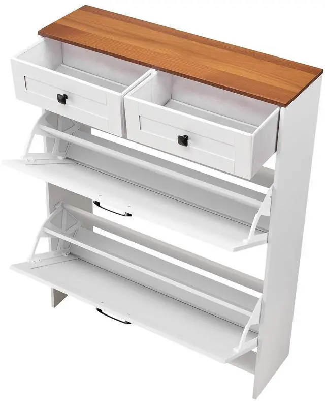 Color: White + Walnut,Item Model Number: ZH614,Style: 2 Flip-Drawers + 2 Drawers,Material: Particle Board + MDF,Item Dimensions: 31.5 x 9.45 x 41.34 in / 800 x 240 x 1050 mm,Top Load Capacity: 44.09 lbs / 20 kg,Net Weight: 42.99 lbs / 19.5 kg