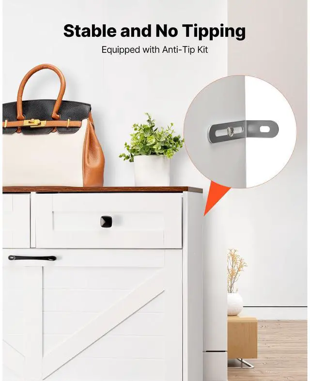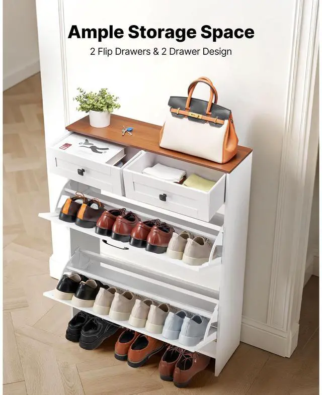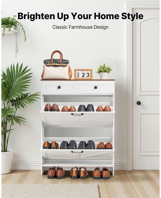 VEVOR Shoe Cabinet with 2 Flip Drawers, Farmhouse Shoes Storage Cabinet with 2 Drawers and Anti-Tipping Device, Freestanding Shoe Organizer Ideal for Entryway, Hallway, Bedroom, Living Room, White