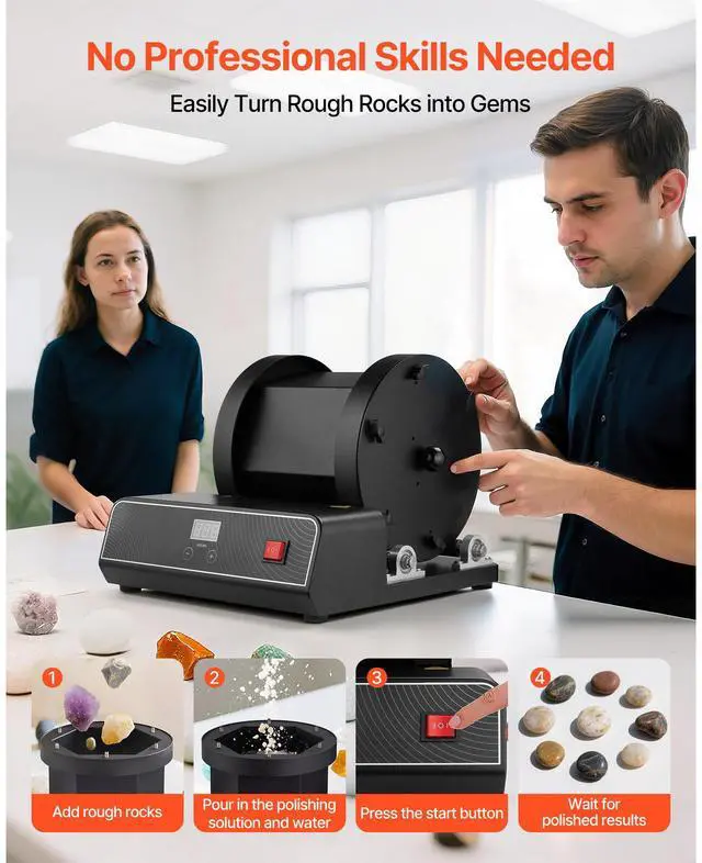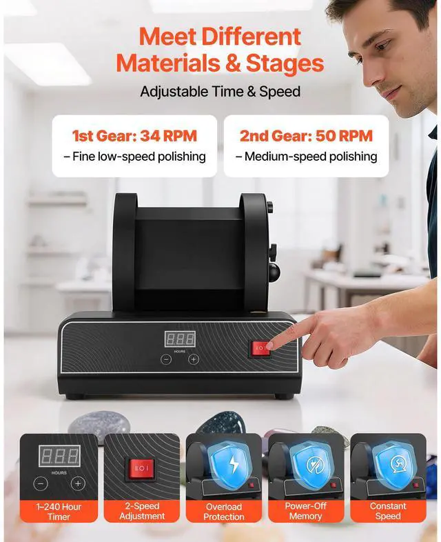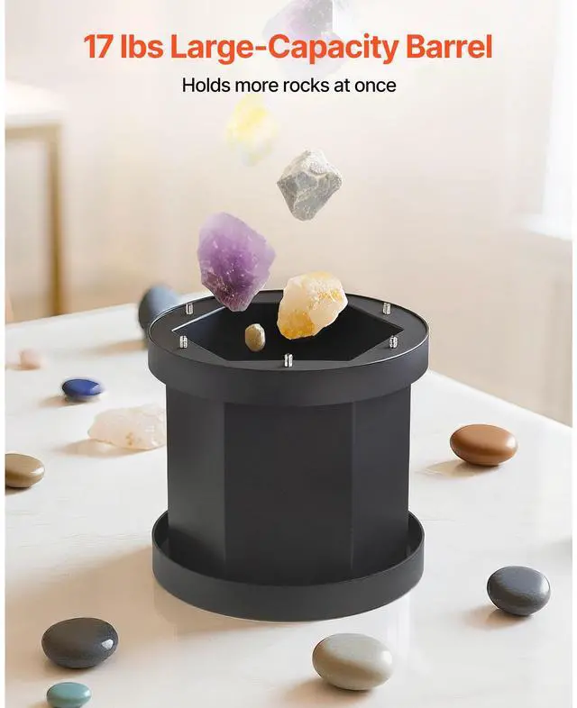 VEVOR Rock Tumbler Kit, 17 lbs Rock Polishing Kit, 2-Speed Stone Polishing Kit with 240-Hour Polishing Timer, Rock Polisher with Belt-Driven Brushless Motor, Rock Polisher for Adults and Kids