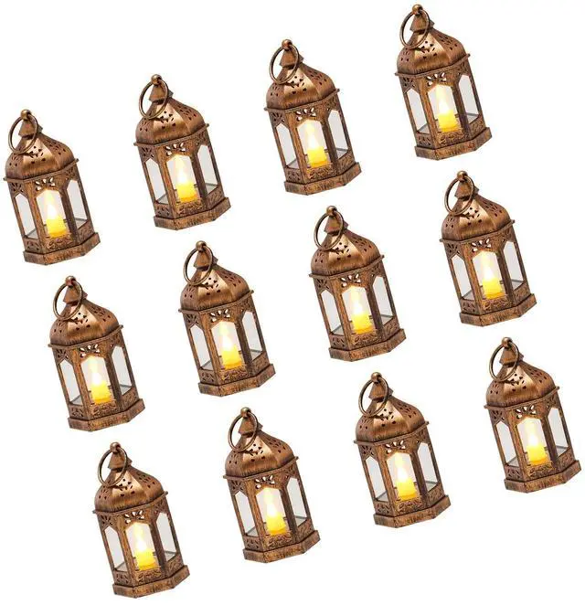 VEVOR 12 Pcs Decorative Candle Lantern, LED Electric Flameless Candle, Plastic LED Holder with Glass, Wall Hanging Indoor Porch Lanterns for Wedding Table Party Farmhouse Indoor Decor, Bronze