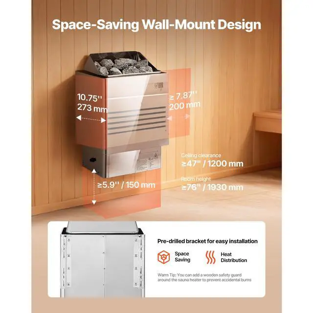 VEVOR Sauna Heater, 9KW 240V Electric Sauna Stove, Dry Steam Bath Saunas Stove with Pre-Drilled Bracket, Fit 317.8 to 459 CU.FT Saunas Rooms, Steam Bath Stoves for Home, Commercial, Leisure Venues
