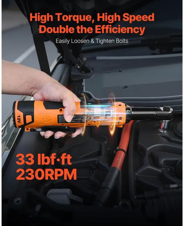 VEVOR Cordless Ratchet Wrench, 3/8 inch Drive, 230 RPM, up to 33 ft-lbs of Torque, Battery Powered Electric Ratchet Wrench Set with Two 2.0Ah Batteries, Charger, Sockets, Adaptor and Carrying Case