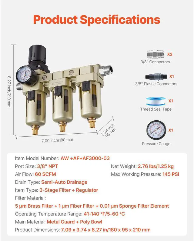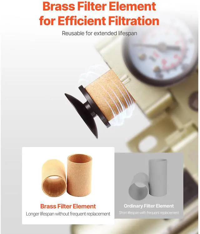 Filter Material: 5 m Brass Filter + 1 m Fiber Filter + 0.01 m Sponge Filter Element