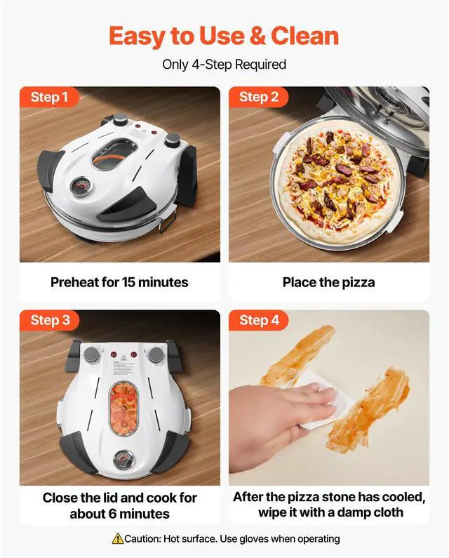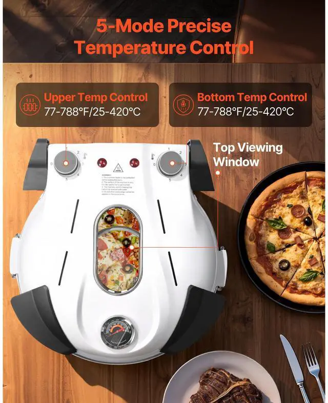 VEVOR Pizza Oven, 12 in Electric Pizza Maker, 1200W Electric Pizzas Cooker with Cordierite Stone, 5-Mode Temperature Control, Viewing Window for Precise Cooking, Heats up to 788 F, for Home (White)