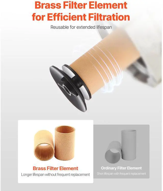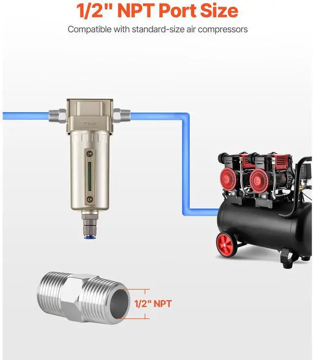 VEVOR Air Compressor Filter, 1/2" NPT Air-Dryer for Compressor with 5m Brass Filter Element, Auto-Drain Air Compressor Water Separator 175 PSI Max Working Pressure, Aluminum Alloy Bowl