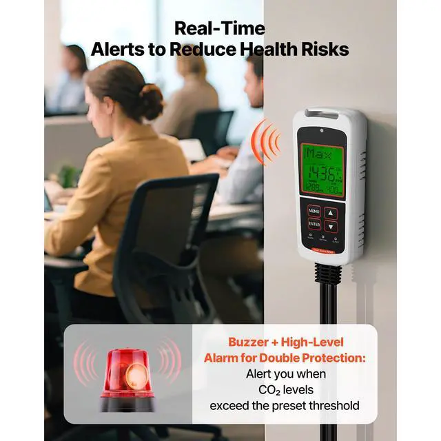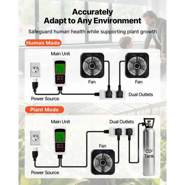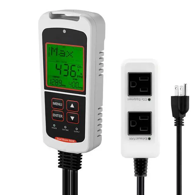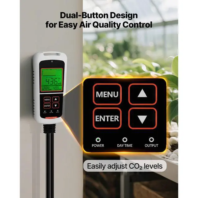 • VEVOR Carbon Dioxide Monitoring Controller, Dual Outlets CO2 Monitor & Controller, Carbon Dioxide Sensor Day and Night Detection Feature, NDIR CO2 Sensor for Greenhouse, Laboratories, Classrooms, Home