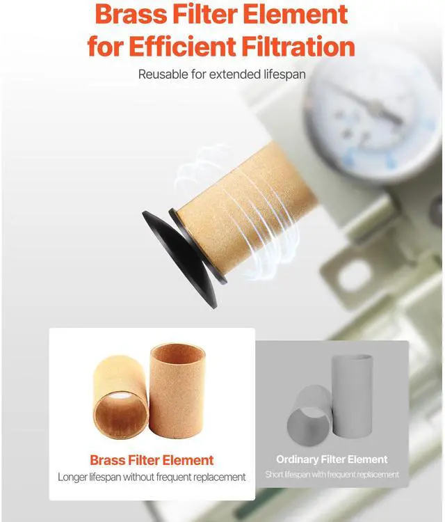 Filter Material: 5 m Brass Filter Element + 0.3 m Sponge Filter + 0.1 m Desiccant Dryer