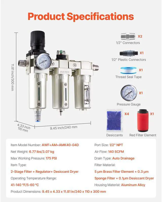 Item Type: 2-Stage Filter + Regulator+ Desiccant Dryer