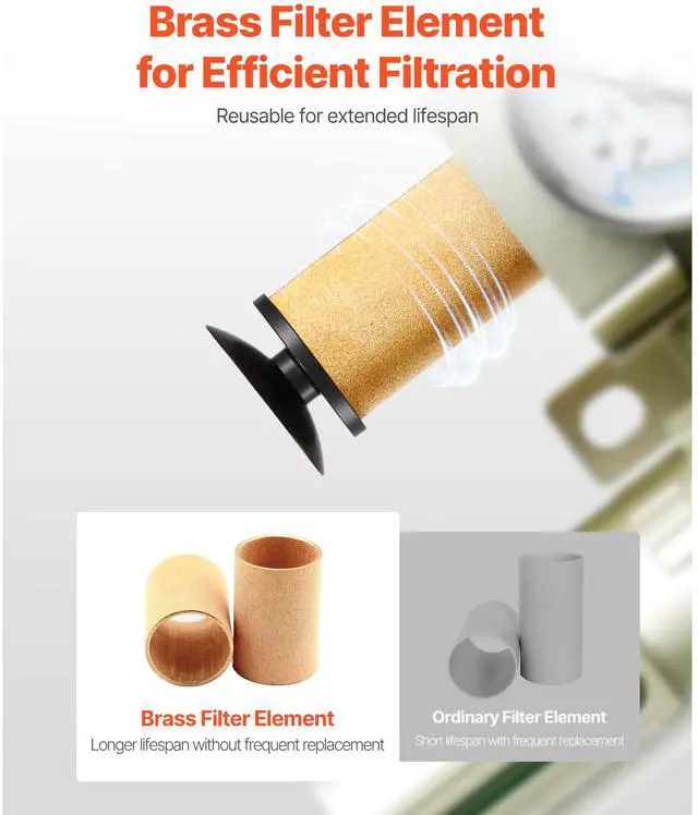 Filter Material: 5 m Brass Filter Element + 0.3 m Sponge Filter + 0.1 m Desiccant Dryer + 0.1 m Desiccant Dryer