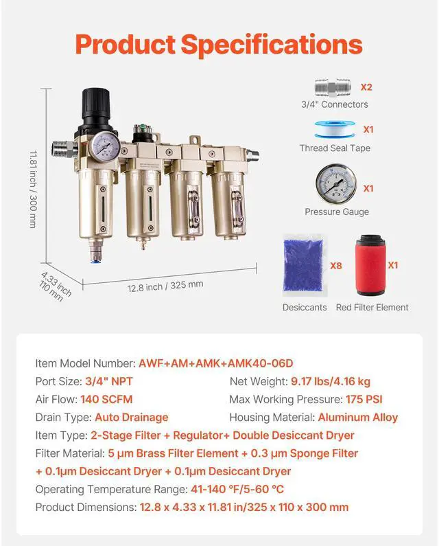 Item Type: 2-Stage Filter + Regulator+ Double Desiccant Dryer