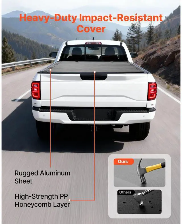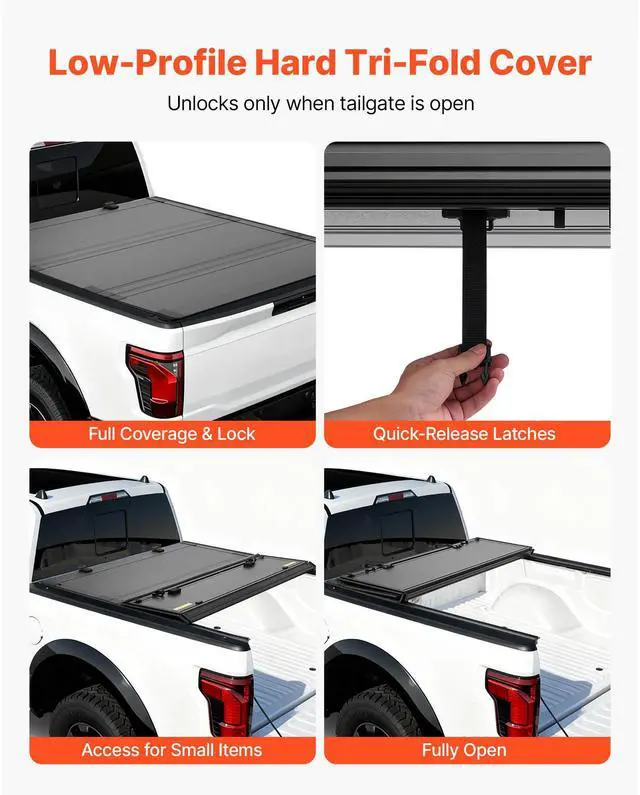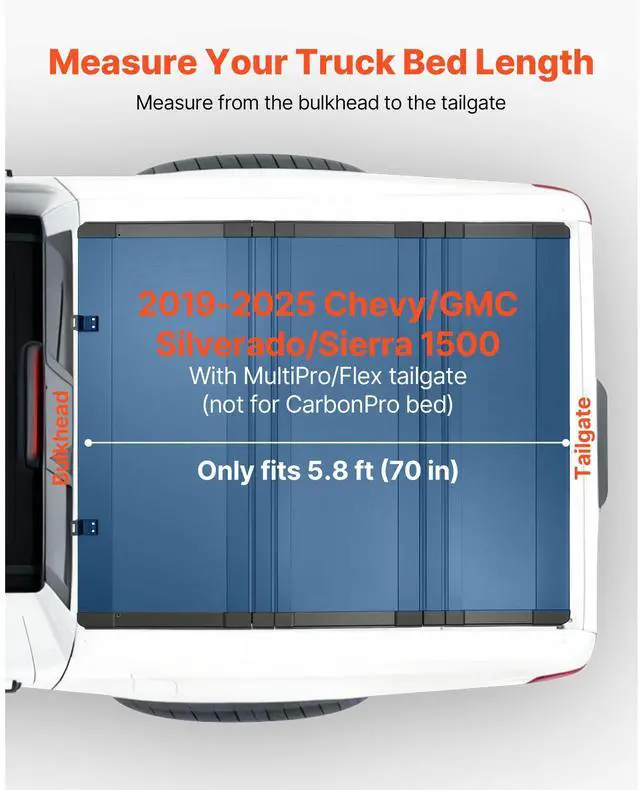 • VEVOR Hard Tri-Fold Truck Bed Tonneau Cover, Compatible with 2019-2025 Chevy/GMC Silverado/Sierra 1500 5.8 ft (70 in) Bed with MultiPro/Flex Tailgate (Not Fit CarbonPro), Waterproof Low-Profile Cover