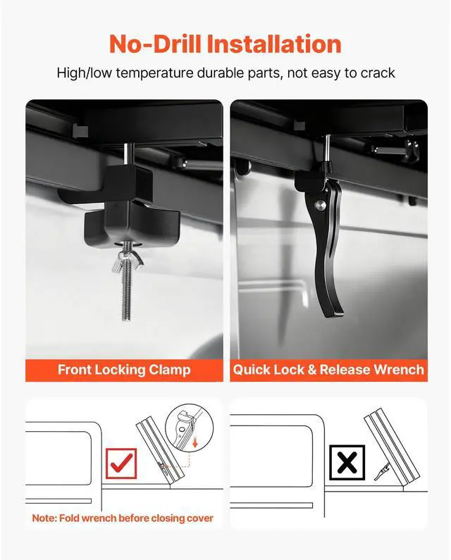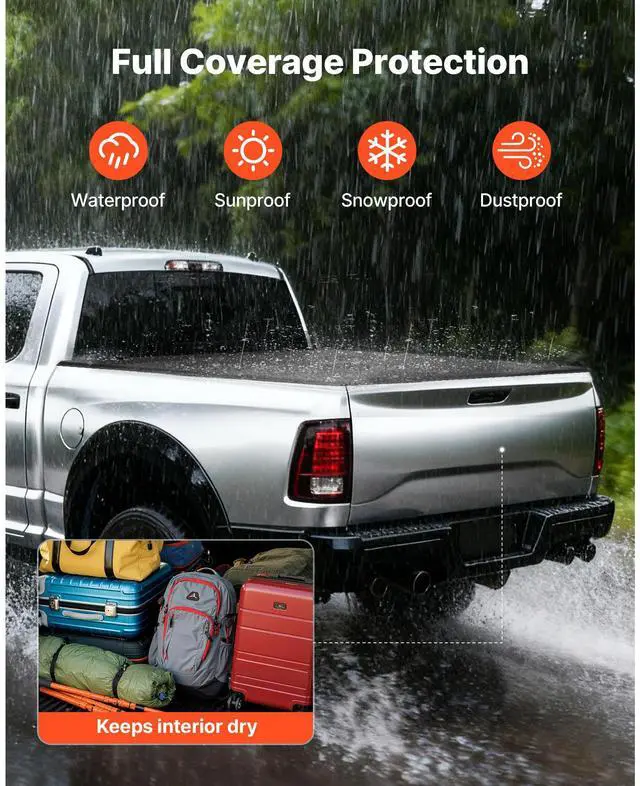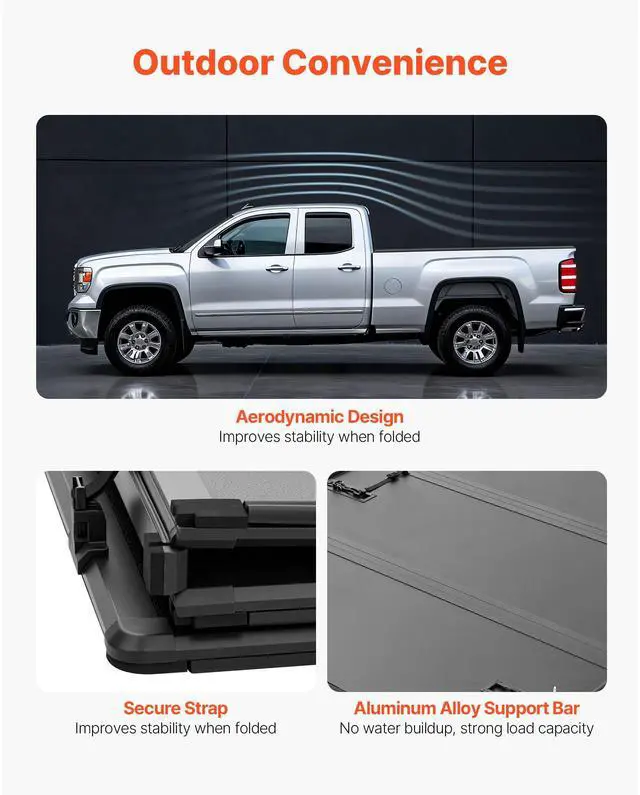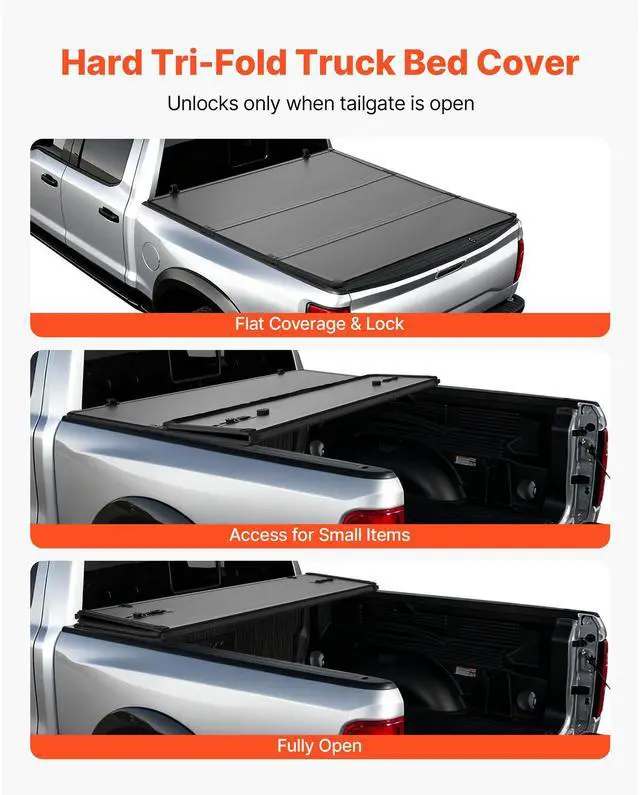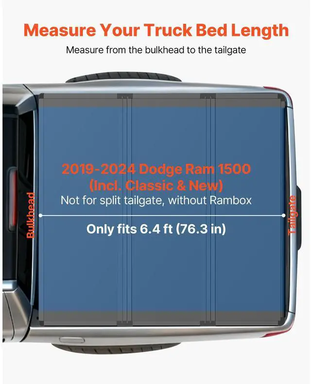 VEVOR Hard Tri-Fold Truck Bed Tonneau Cover, Compatible with 2019-2024 Dodge Ram 1500 (Incl. Classic & New) 6.4 ft (76.3 in) Bed Without Rambox (Not Fit Split Tailgate), Waterproof Folding Truck Cover