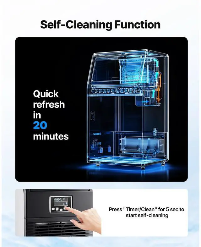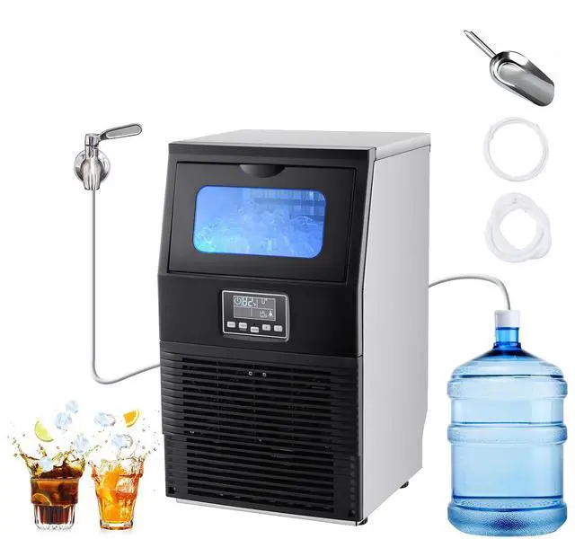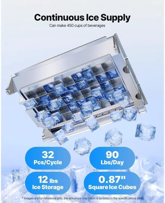VEVOR Commercial Ice Maker Machine, 90 lbs/24h with 12Lbs Storage, 32 Cubes per Cycle, Stainless Steel Freestanding & Countertop Ice Maker with LED Display & Self-Cleaning, for Home Bar Restaurant