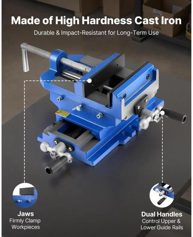 VEVOR Cross Slide Drill Press Vise, 4 Inch Jaw Width, 2 Way X-Y Axis Bench Vise, 3.5 Inch Max Jaw Opening, Heavy Duty Cast Iron, Workbench Vice Clamp, for Woodworking Drilling CNC Milling Machine