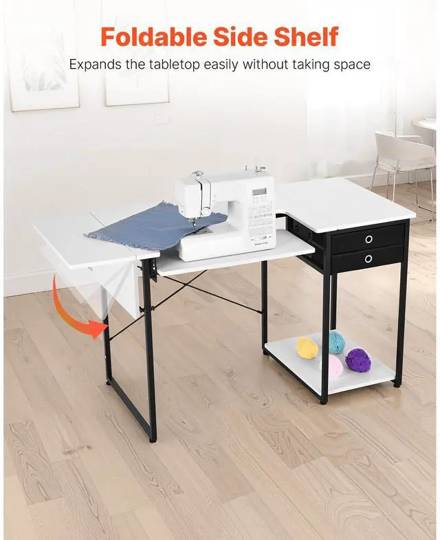 VEVOR Sewing Table, Multipurpose Sewing Machine Table with Drawers, Foldable Side Shelf, Adjustable Shelf, Steel Legs, Computer Desk for Home, Fashion Studio, Art Studio, Educational Institution