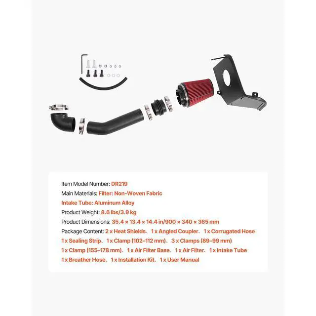 Item Model Number: DR219,Product Weight: 8.6 lbs/3.9 kg,Filter Material: Non-Woven Fabric,Intake Tube Material: Aluminum Alloy,Product Dimensions: 35.4 x 13.4 x 14.4 in/900 x 340 x 365 mm