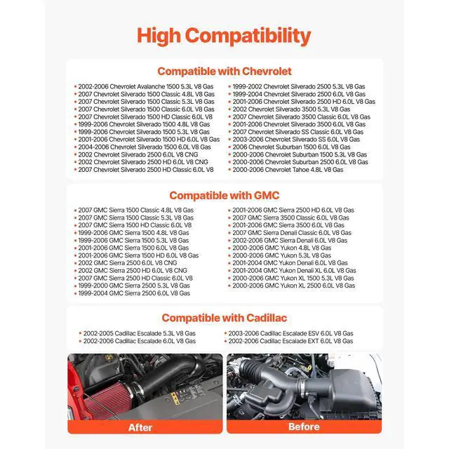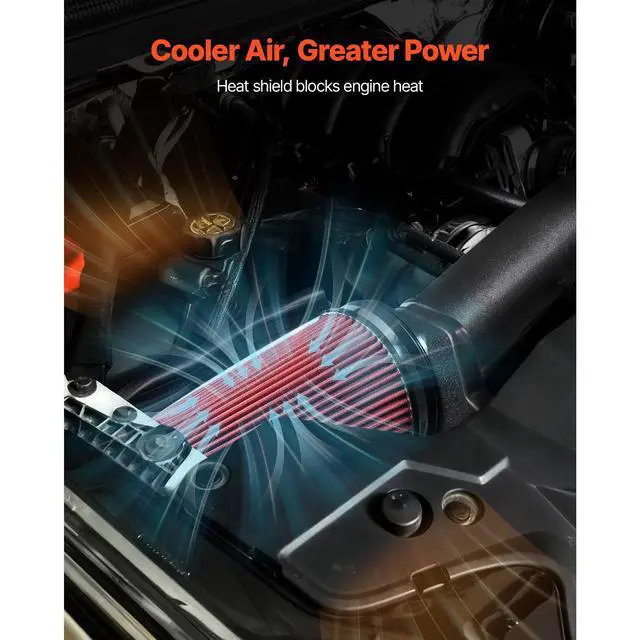 VEVOR Cold Air Intake, 3.9 Inch Cold Air Intake System + Heat Shield Compatible with 1999-2006 Chevy Silverado/GMC Sierra 1500 V8 4.8L/5.3L, High Flow Filter Kit Improve Horsepower, Throttle Response