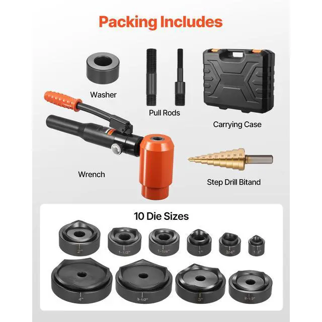 VEVOR Knockout Punch Set, 15 Ton Hydraulic Knockout Set, 1/2" to 4" KO Tool Kit Hole Making Tool, KO Tools Kit W/10 Dies for Metal Electrical Cabinets, Electrical Control Cabinets, Switch Cabinets