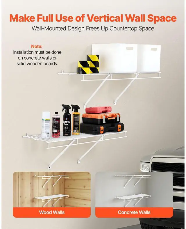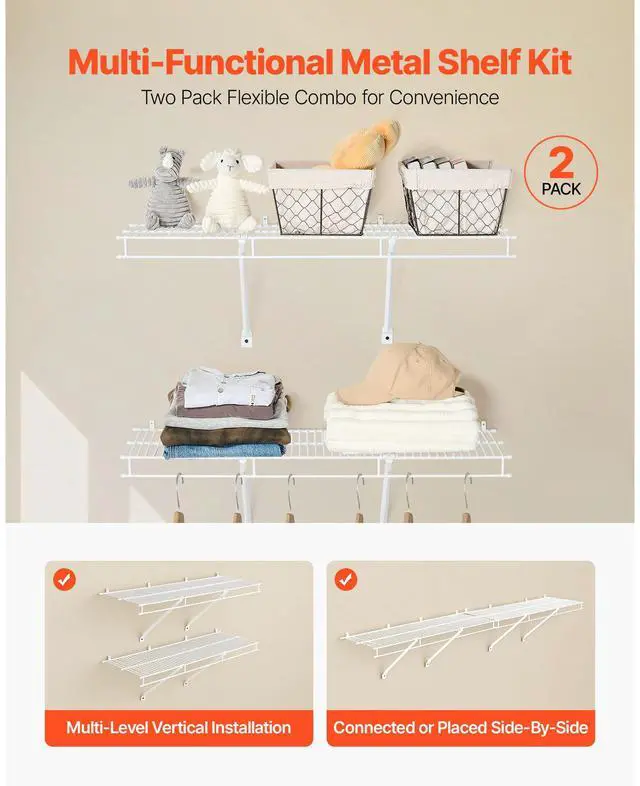 VEVOR Wire Shelf Kit, 3 ft, Set of 2, Wall Mounted Wire Shelves, Heavy-Duty Carbon Steel Hanging Shelf, Floating Wall Storage Shelves with Dip Coating, for Closet, Bedroom, Living Room, Office, Pantry