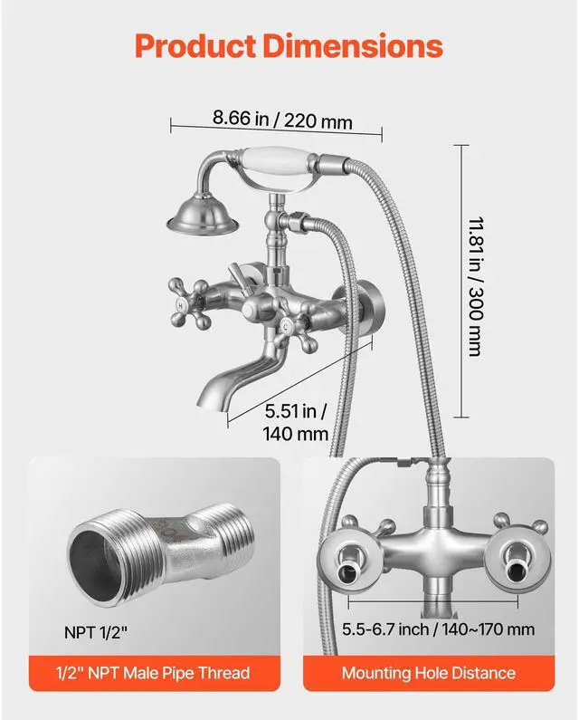 Mounting Hole Distance: 5.5 - 6.7 inch / 140 - 170 mm