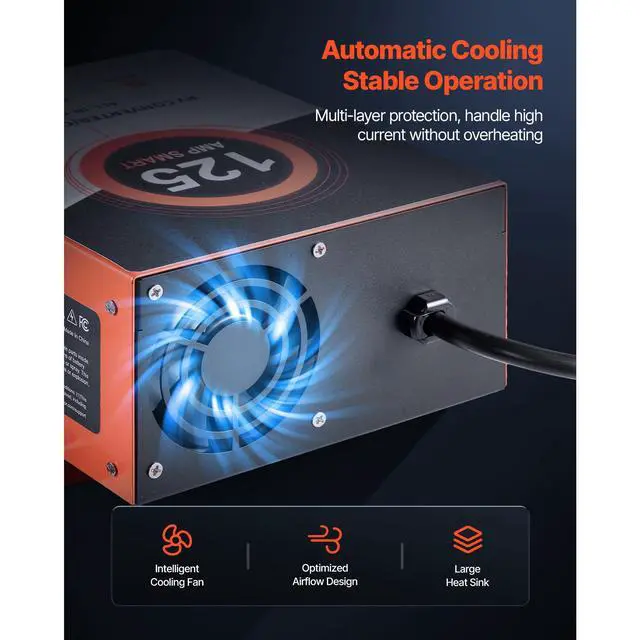 Ground Resistance: < 300 m at 12V/25A,Item Model Number: SBC-125A,Lead Acid Battery Output Voltage: 12V14.6V,Input Voltage: AC 120V 60Hz,Lithium Battery Output Voltage: 12V14.6V,Fixed Voltage Output Mode: 13.0V/14.6V/16.5V,Max Output Current: 125A,Max Output Power: 1812.5W (14.5V/125A)±20W