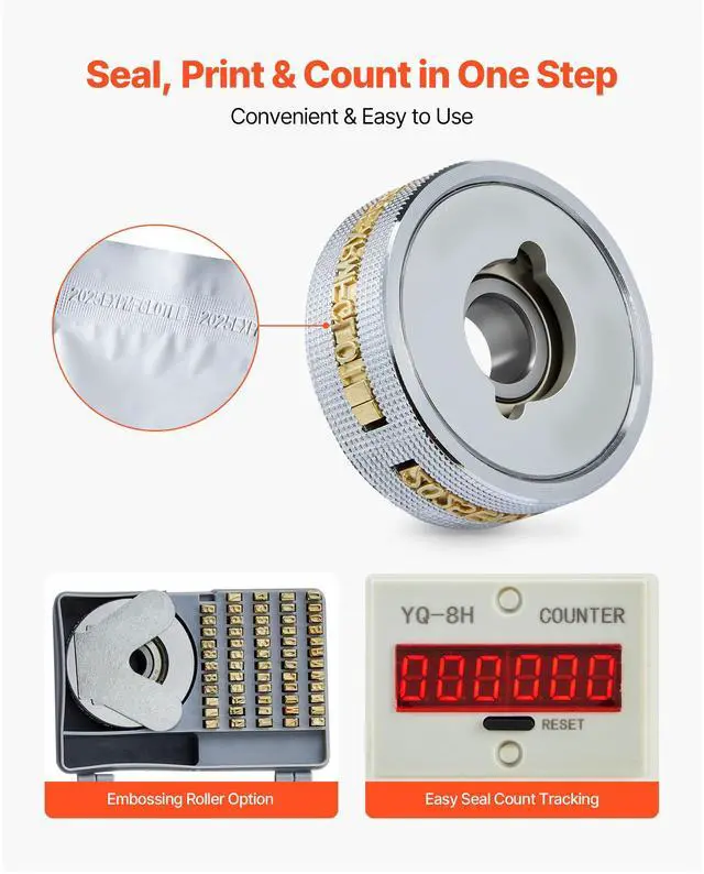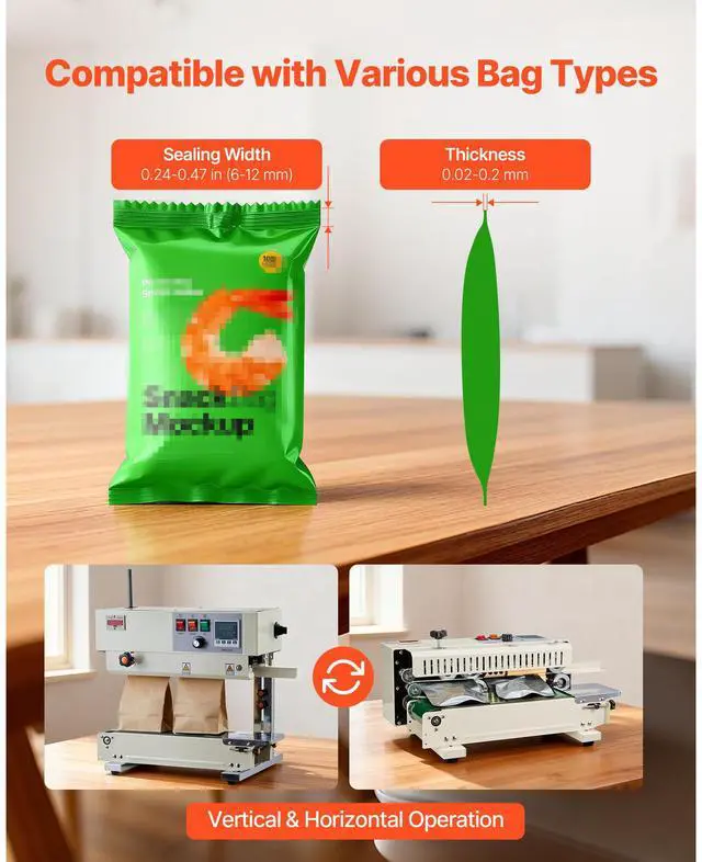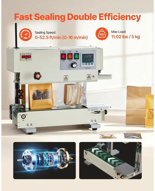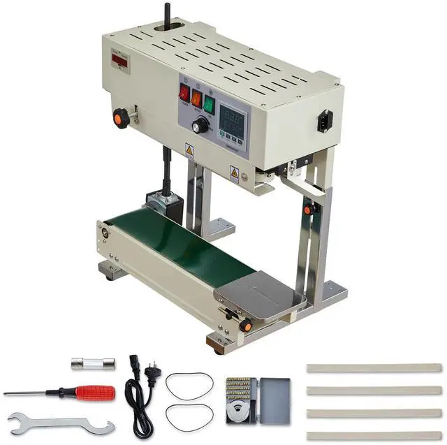 VEVOR Continuous Bag Band Sealing Machine, 0.24-0.47 in Seal Width, Vertical Band Sealer Machine with Roller Printing , Temp & Speed Adjustable, Heat Sealing Machine for 0.001-0.03 in Plastic Bags